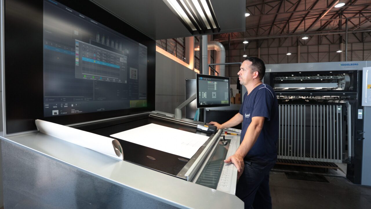 Entre os equipamentos de destaque, está a impressora offset CX 104 Speedmaster da Heidelberg, que oferece alta tecnologia para garantir fidelidade excepcional de cores, grandes formatos de impressão e otimização do uso de matéria-prima.