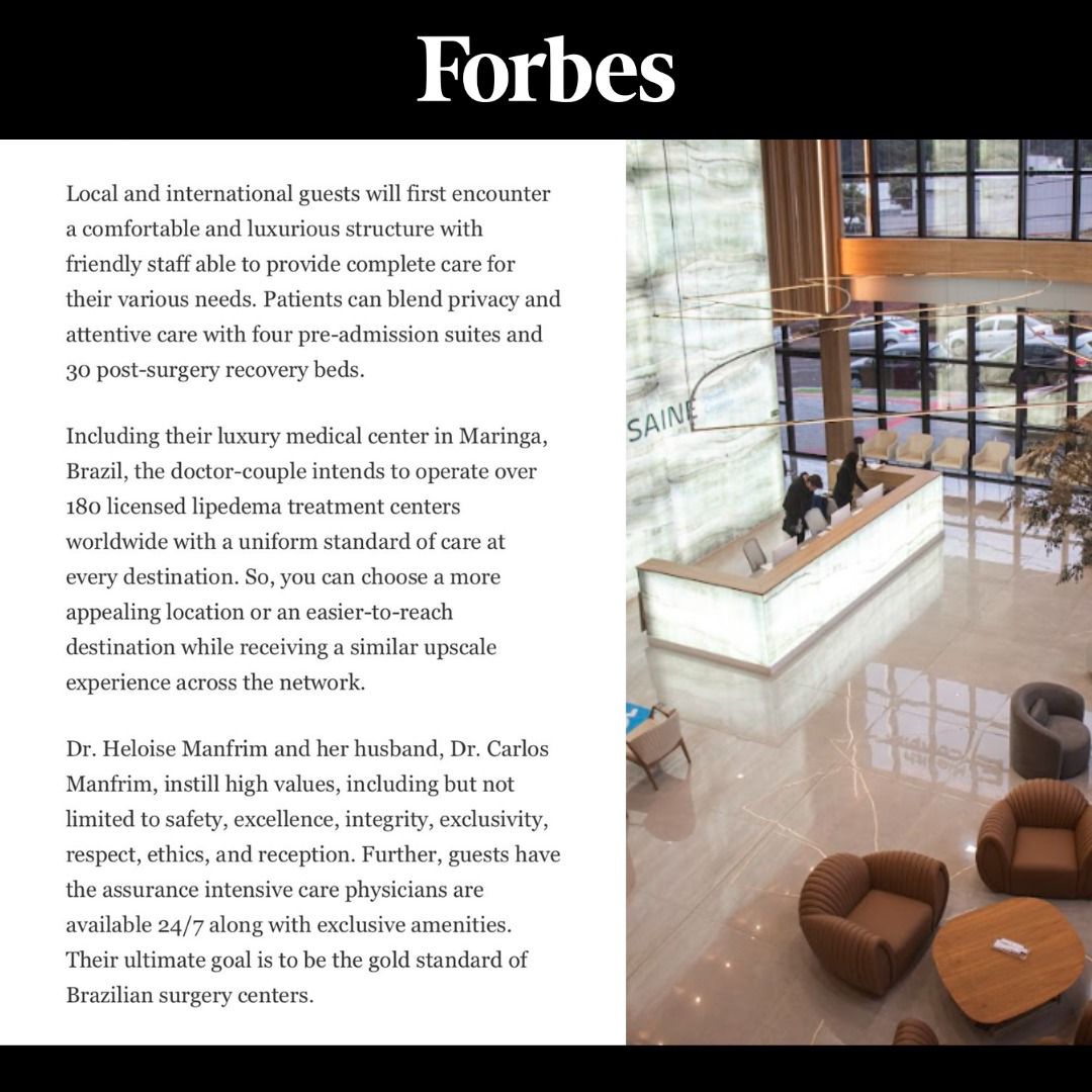 Entre esses, o casal de cirurgiões plásticos, Dra. Heloise Dall’ago Manfrim e Dr. Carlos Manfrim, tem conquistado reconhecimento nacional e internacional, especialmente no campo inovador do tratamento do lipedema. Recentemente, esse destaque chamou a atenção da renomada revista americana Forbes, que publicou uma matéria histórica para a medicina de Maringá.