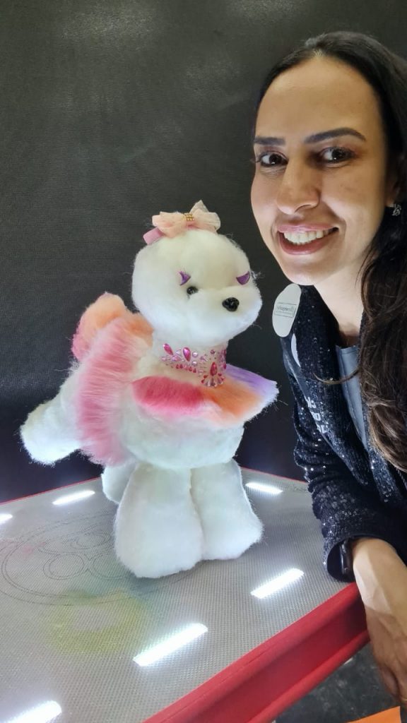 Já Eva resolveu trazer a excelência de uma bailarina em movimento de dog doll. “A Bailarina que repete várias e várias vezes o movimento até chegar à excelência onde ela busca a transformação. Acredito que a gente faz isso dentro do banho e tosa e aqui eu quero trazer a transformação, o movimento, a beleza de uma bailarina quando está em movimento”, afirma Eva Barbieri.