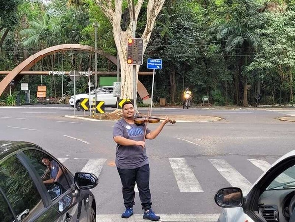 Jovem toca violino nos semáforos de Maringá e vira atração