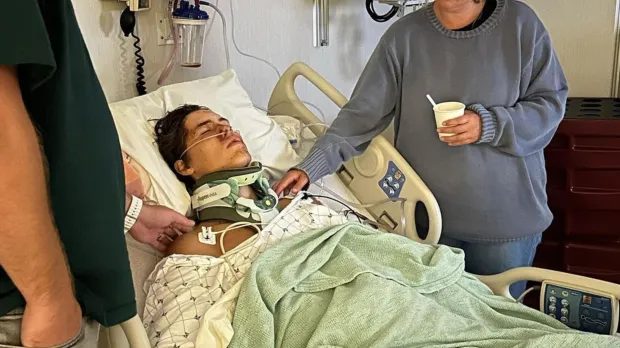 Conforme informado pelo pai do jovem, Jason Coffee, em uma publicação no Instagram, ele está internado na Unidade de Terapia Intensiva (UTI). Nas imagens é possível ver que Caleb sofreu diversas fraturas no corpo.