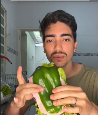 E a intenção de Deivid Netto, de 24 anos, foi justamente a de viralizar. Ao GMC Online, ele contou que o vídeo é uma trend (tendência), do Tik Tok, que começou há alguns meses. “Essa trend veio dos Estados Unidos e consiste em fazer um sanduíche vegano usando o pimentão no lugar do pão, mas no Brasil o lanche ficou do nosso jeito e o pessoal colocou peito de peru, presunto, mussarela. Então quem não pode ou não quer comer pão e gosta de pimentão gravou o vídeo para poder postar, e aí virou uma trend por ser um prato diferente”, disse.