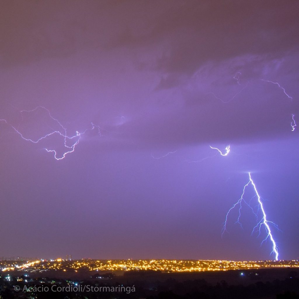 50 raios caíram em Maringá durante temporal na madrugada desta terça. Foto: Acácio Cordiolli/StorMaringá/Ilustrativa