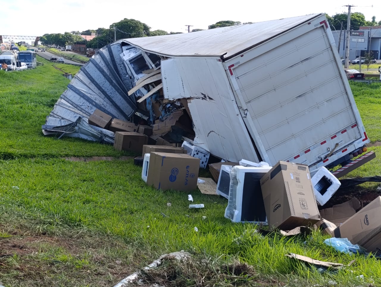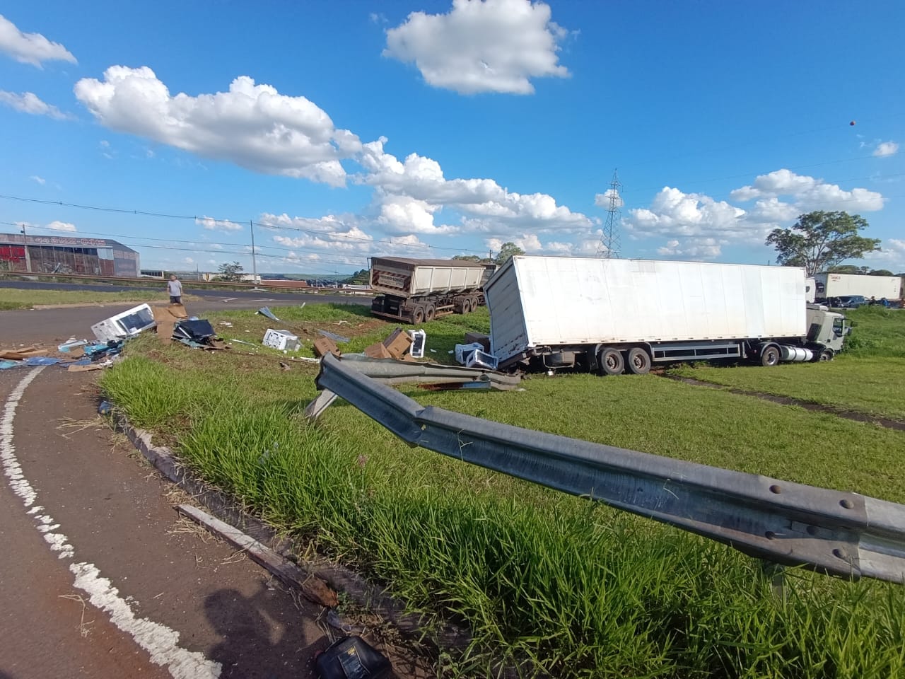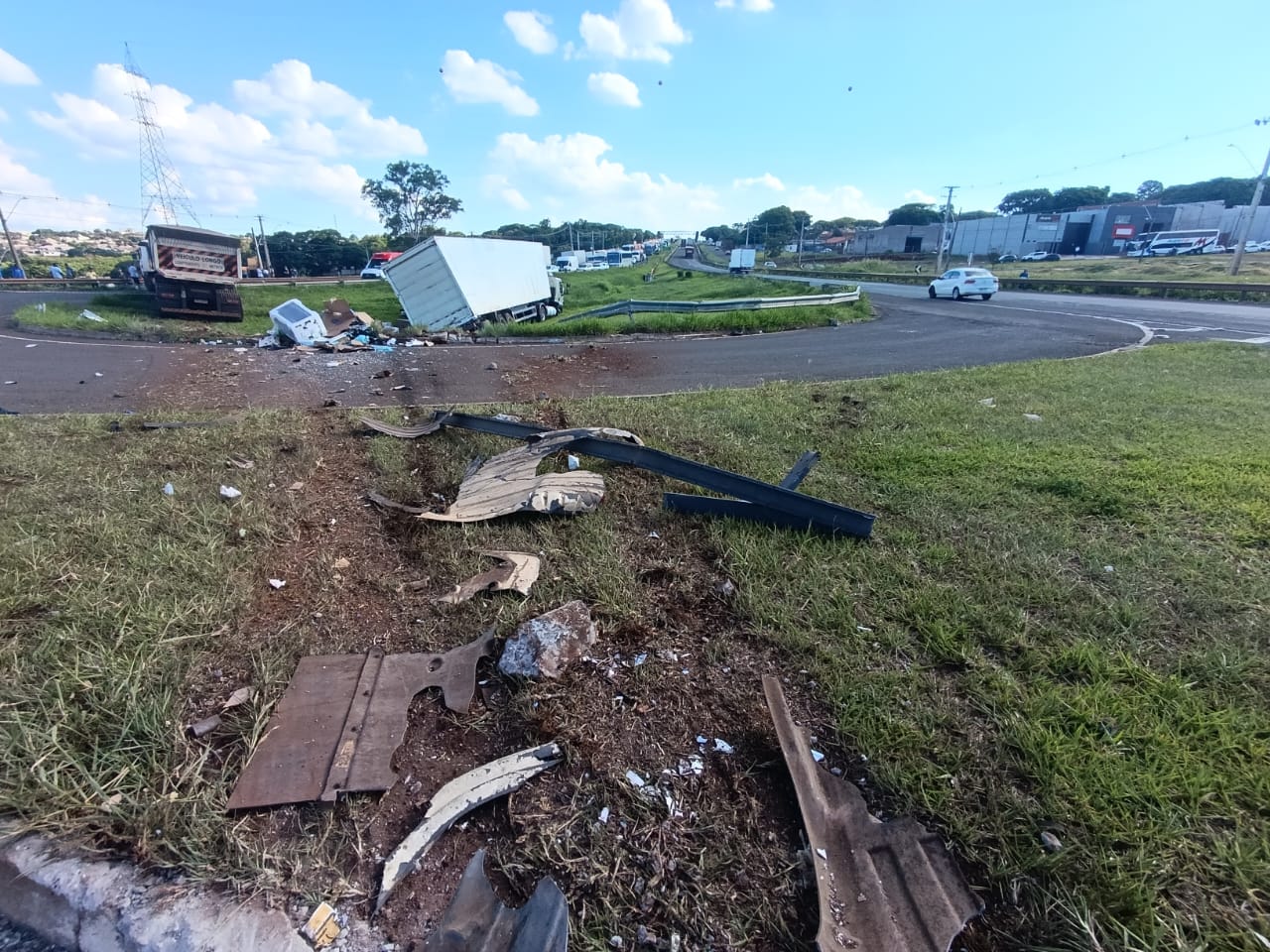 Com o impacto, as duas carretas invadiram o canteiro central e atravessaram para o outro lado da pista. Uma delas ficou atravessada completamente sobre a via, interditando o tráfego no sentido Sarandi–Maringá e provocando um grande congestionamento. A outra permaneceu sobre o canteiro central.