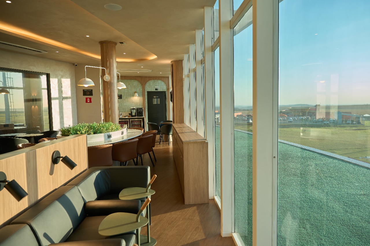 A sala VIP oferece aos clientes bebidas quentes e frias, alimentos e espaço confortável para descansar e aguardar o momento do embarque.