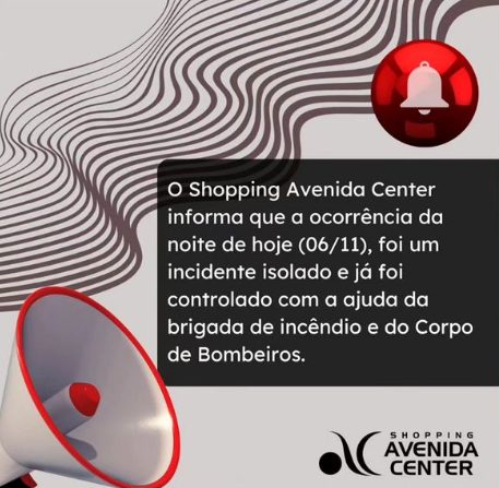 De acordo com o Corpo de Bombeiros o incêndio ficou confinado na cozinha de um restaurante do piso superior. A suspeita é que o fogo tenha se iniciado na fritadeira ou por causa de um curto-circuito. Um segurança foi encaminhado para o hospital por ter inalado fumaça, segundo a corporação.