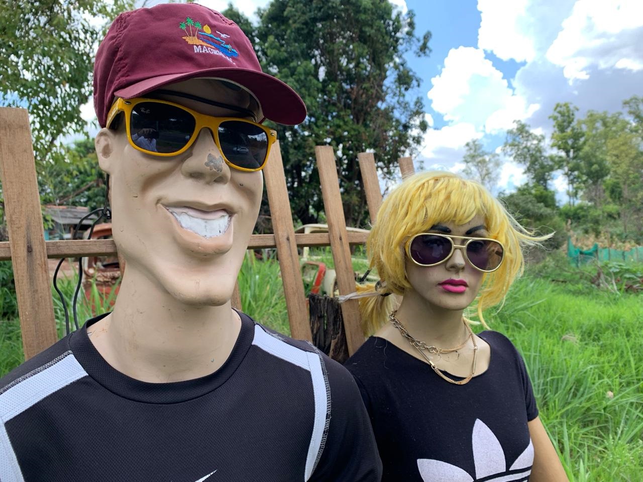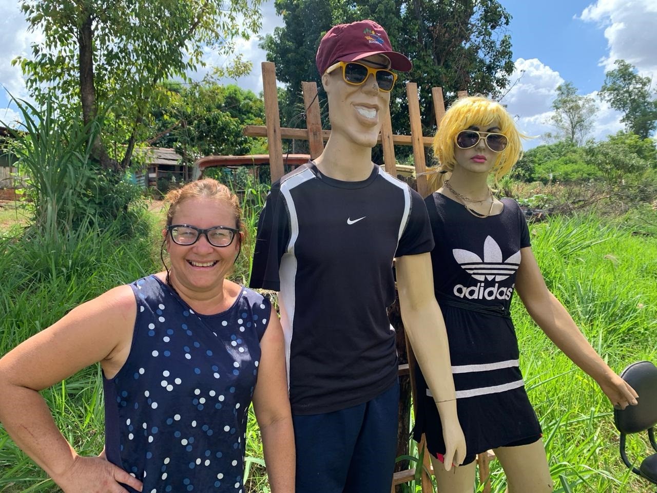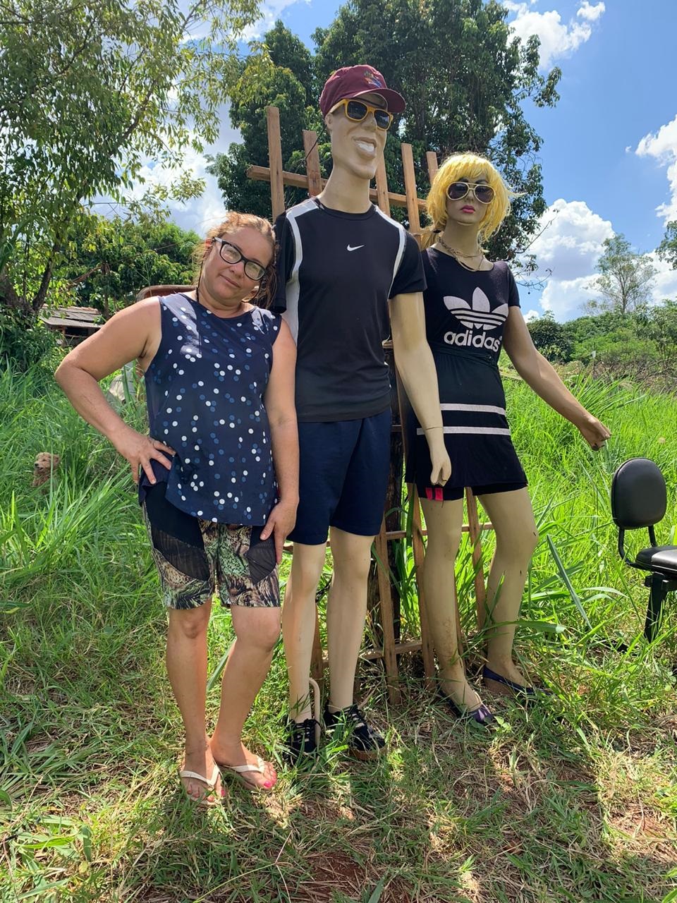Os bonecos foram colocados na frente da chácara da Adriana do Nascimento, 43 anos, uma mulher alegre, simples, humilde e de uma energia incrível. A doméstica mesmo teve a ideia de vestir os bonecos e colocá-los perto da Avenida para divertir os vizinhos.