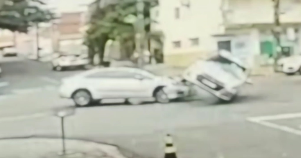 O vídeo gravado por uma câmera de segurança mostra como o acidente aconteceu. O motorista do Ford Fiesta trafegava pela avenida no sentido ao Centro e não respeitou a preferência ao fazer a conversão.