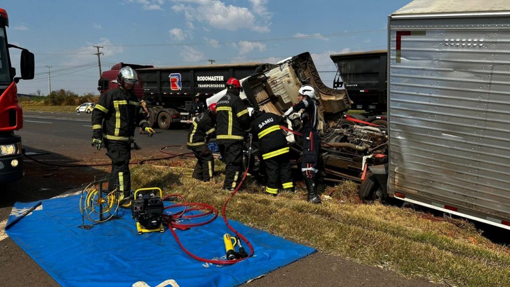 A vítima ficou presa à cabine, que se soltou. Os bombeiros tiveram bastante trabalho para retirar o homem e parte da lataria teve que ser cortada.