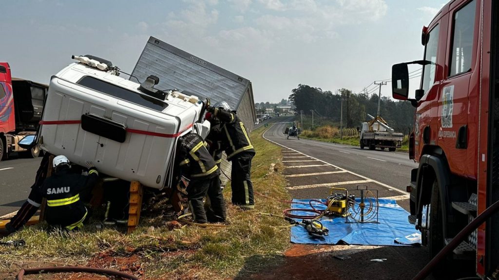 Um homem, de 55 anos, ficou ferido e foi levado ao hospital de helicóptero depois que o caminhão que ele conduzia sair da pista e cair na canaleta. O acidente aconteceu no final da manhã desta quinta-feira, 24, na BR-376, em Nova Esperança. O motorista trafegava no sentido de Nova Esperança a Maringá e percorreu cerca de 30 metros pela canaleta, até parar.