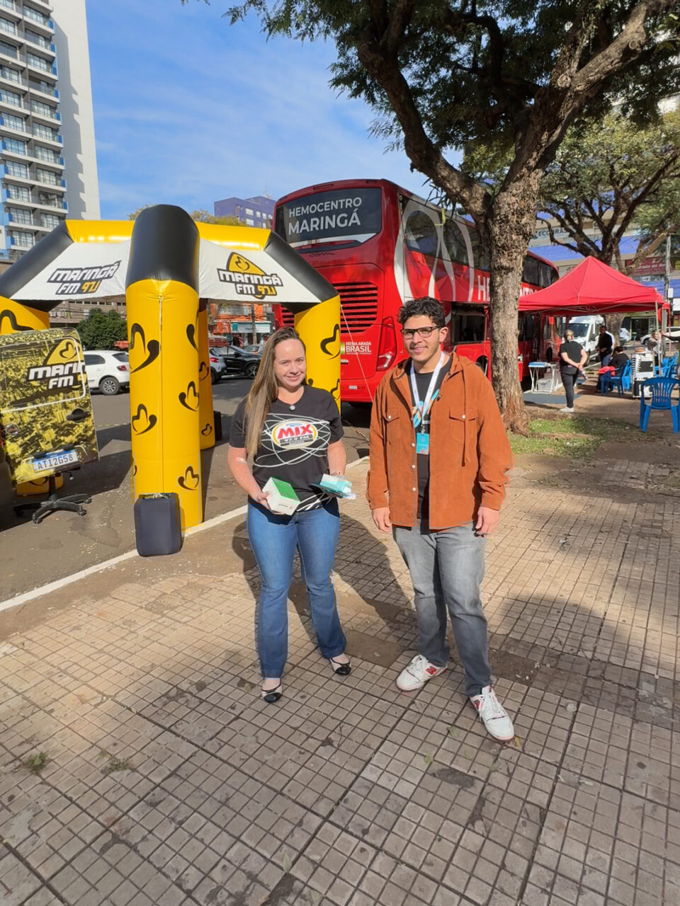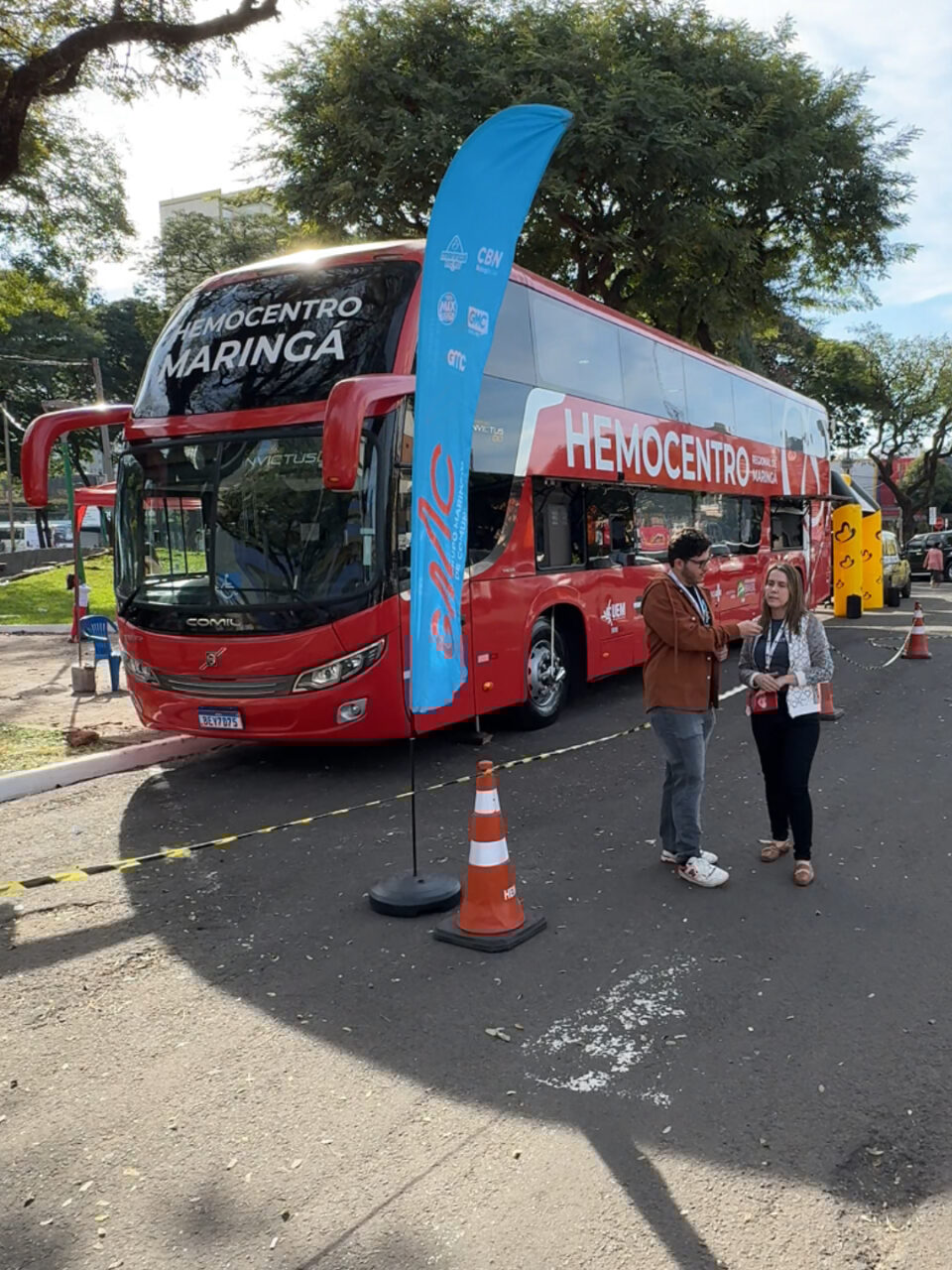 Em uma iniciativa de solidariedade e compromisso com a comunidade, o Grupo Maringá de Comunicação (GMC), por meio do seu Grupo de Qualidade de Vida, promoveu nesta quinta-feira, 17, uma campanha de doação de sangue em parceria com o Hemocentro Regional de Maringá. O ônibus de coleta estacionou durante todo o dia na Praça Raposo Tavares, ao lado da sede do GMC, que abriga as rádios Maringá FM, MIX FM, CBN Maringá, o Portal GMC Online e o GMC Eventos.