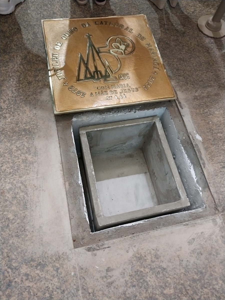 Cápsula do tempo que será aberta em 2072 é colocada na Catedral de Maringá