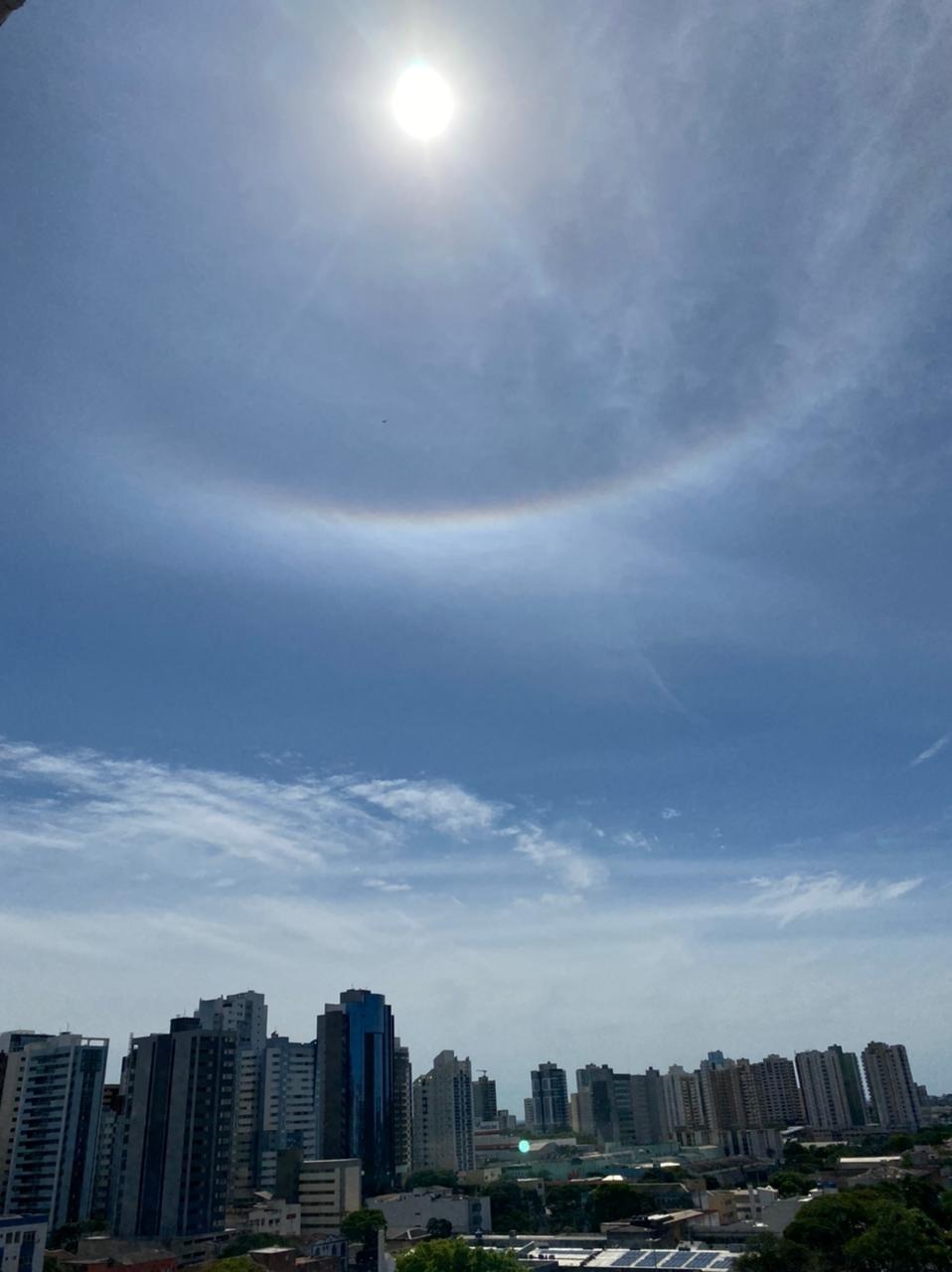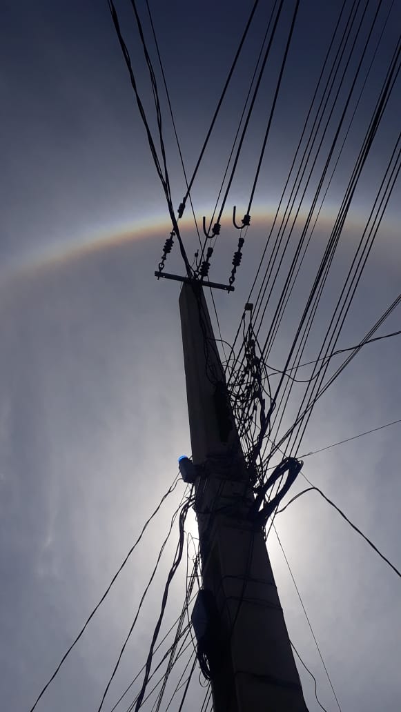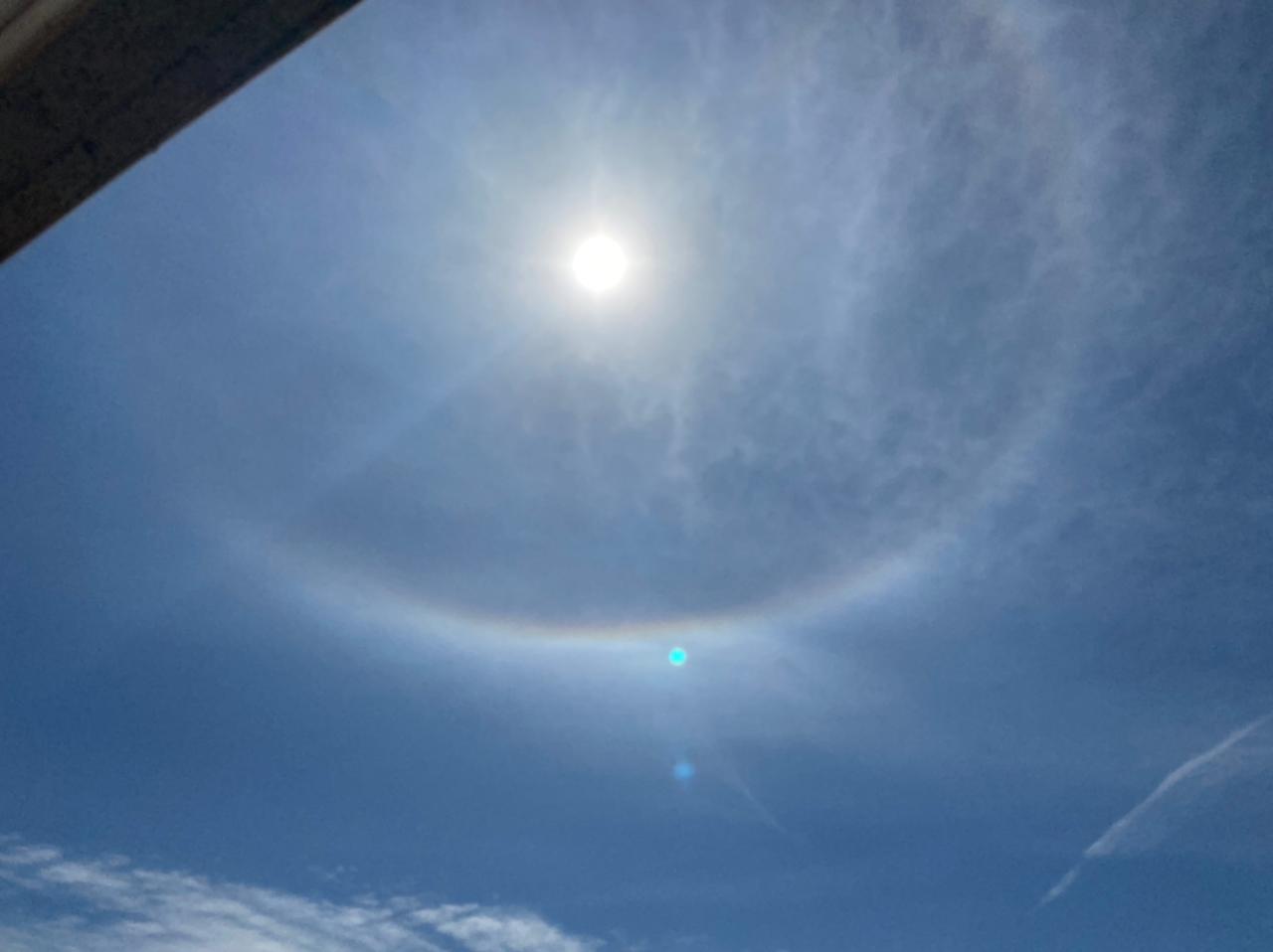 A formação de um círculo em torno do sol chamou a atenção na manhã desta quinta-feira, 29, em Maringá. Diversas fotos e vídeos da “bola” gigante no céu tomaram conta das redes sociais.