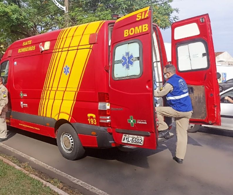 Dois homens ficam feridos após acidente envolvendo moto, carro e caminhonete em Maringá