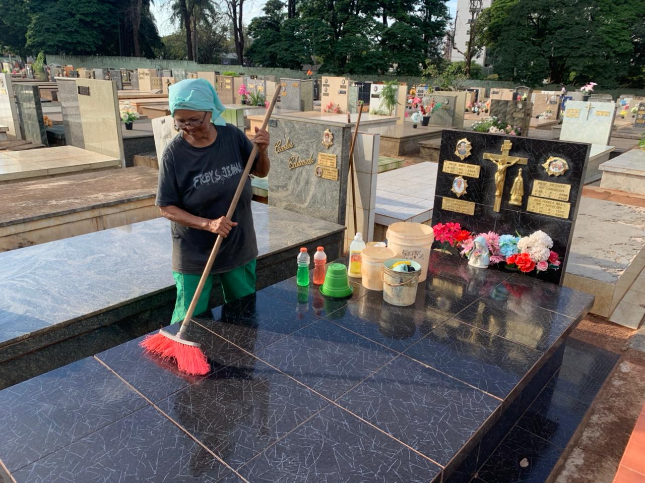 Dona de uma fé e alegria contagiantes, Maria está sempre sorrindo pelos corredores do cemitério. Não falta um dia sequer. Nem mesmo quando chove. Ela ama zelar pelos túmulos na qual foi contratada por familiares dos falecidos para limpar. São mais de 30 túmulos por semana, todos estão sempre limpinhos.
