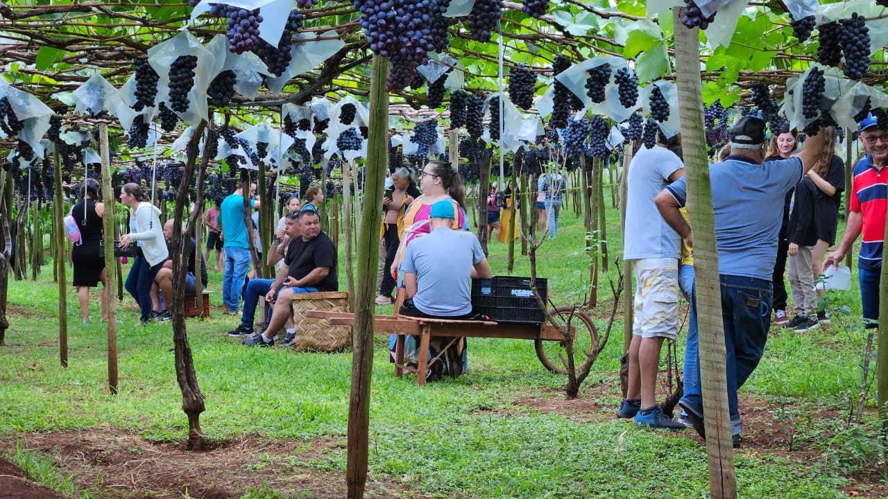 Entre as atividades mais procuradas está o colha e pague, que permite aos visitantes colherem e consumirem as uvas diretamente do parreiral. “Atualmente, três propriedades oferecem essa experiência. O visitante paga uma taxa para entrar, consome a uva no local e, se quiser levar para casa, paga pela quantidade colhida”, detalha Tatiana.