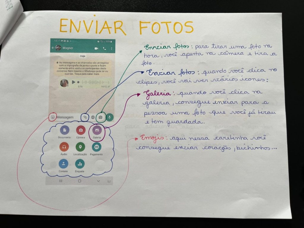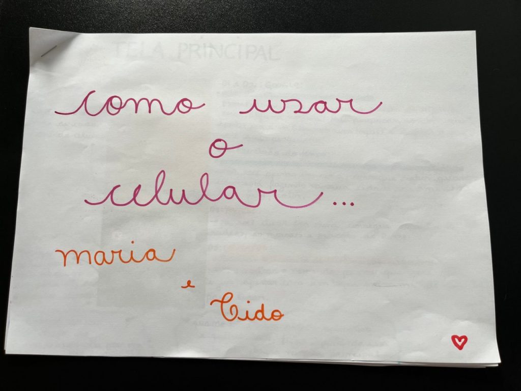 Beatriz fez três tentativas para ensinar Maria a lidar com a nova tecnologia, mas sem muito sucesso. “Por ser algo muito novo para ela, tecnologia e tudo mais, ela não tinha noção nem de como começar, não sabia para que serviam os ícones do celular, WhatsApp… ela não sabia que dava para se comunicar com as pessoas através de vídeo chamada, fotos, áudio e tudo mais. Ela ficou impressionada quando comecei a mostrar todos esses recursos do celular. Expliquei várias vezes como os aplicativos e ícones do celular funcionavam, mas por ser uma pessoa mais simples, humilde, idosa e que nunca teve contato com a tecnologia, ela não entendeu muito bem, então para ela não desanimar e desistir do celular eu decidi fazer esse manual mais interativo e simples para ela conseguir acompanhar”, relata.