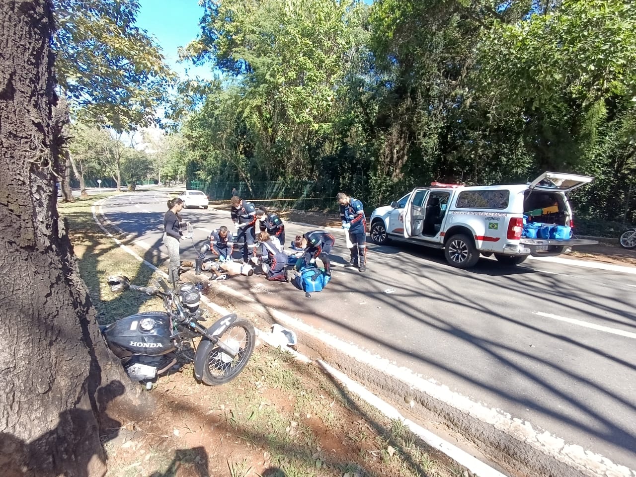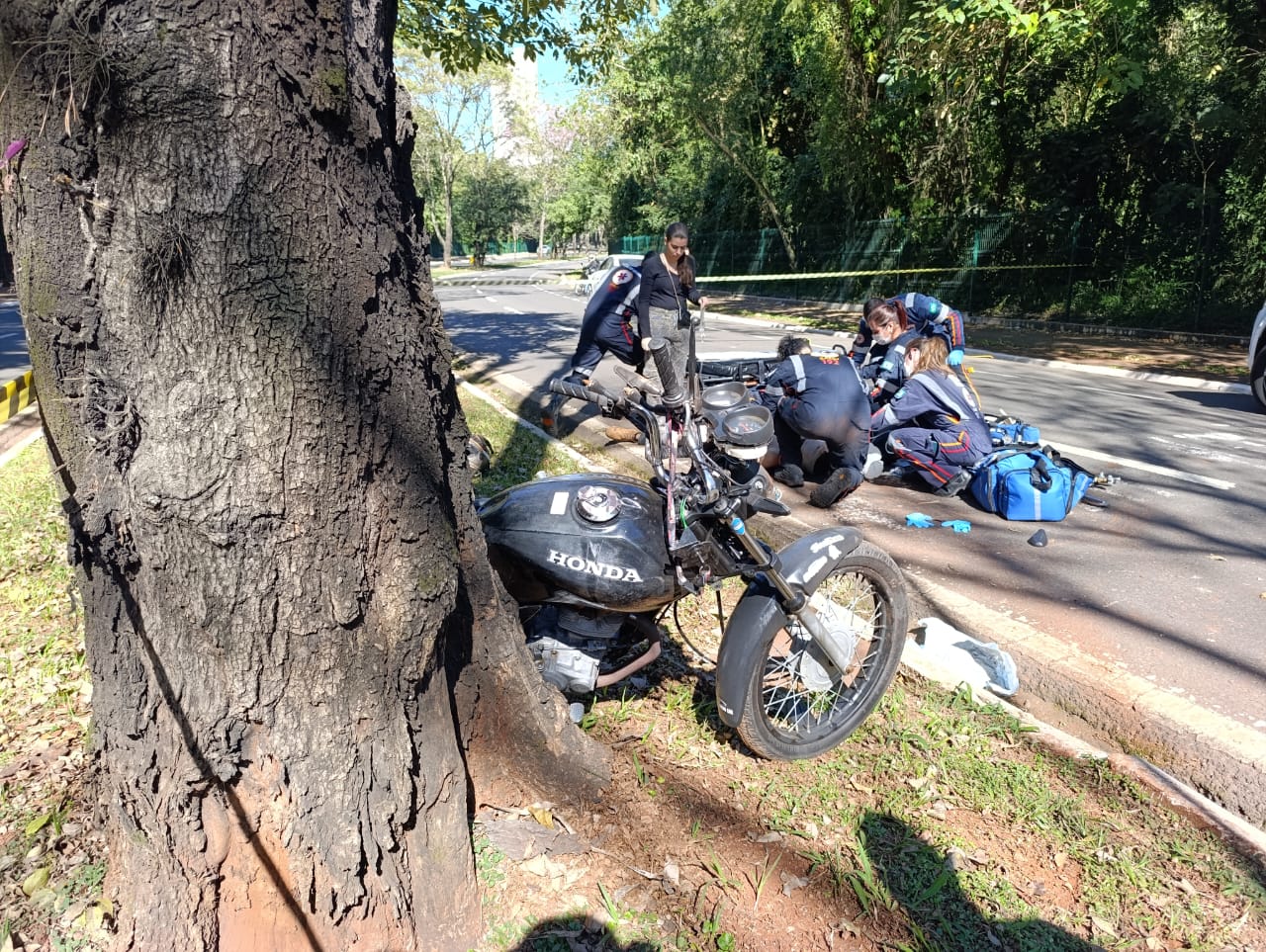 Motociclista é entubado após colisão com árvore em Maringá; veja imagens