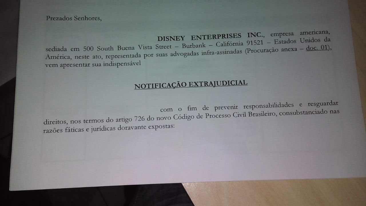Em meados de 2018, o proprietário do estabelecimento, Ademir Padovan, recebeu uma notificação da Disney em sua residência. O documento dizia: “Por meio de uma breve pesquisa online, verificou-se que a Oposta vem utilizando sua marca com uma estilização idêntica àquela utilizada há anos pela Opoente. Como se verifica abaixo, os termos Disnei e Disney, além de praticamente idênticos, possuem exatamente a mesma grafia e fonte de letras, grafia esta consagrada e reconhecida mundialmente por pertencer à Opoente, a qual é protegida, inclusive, por Direitos Autorais”. Veja parte da notificação: