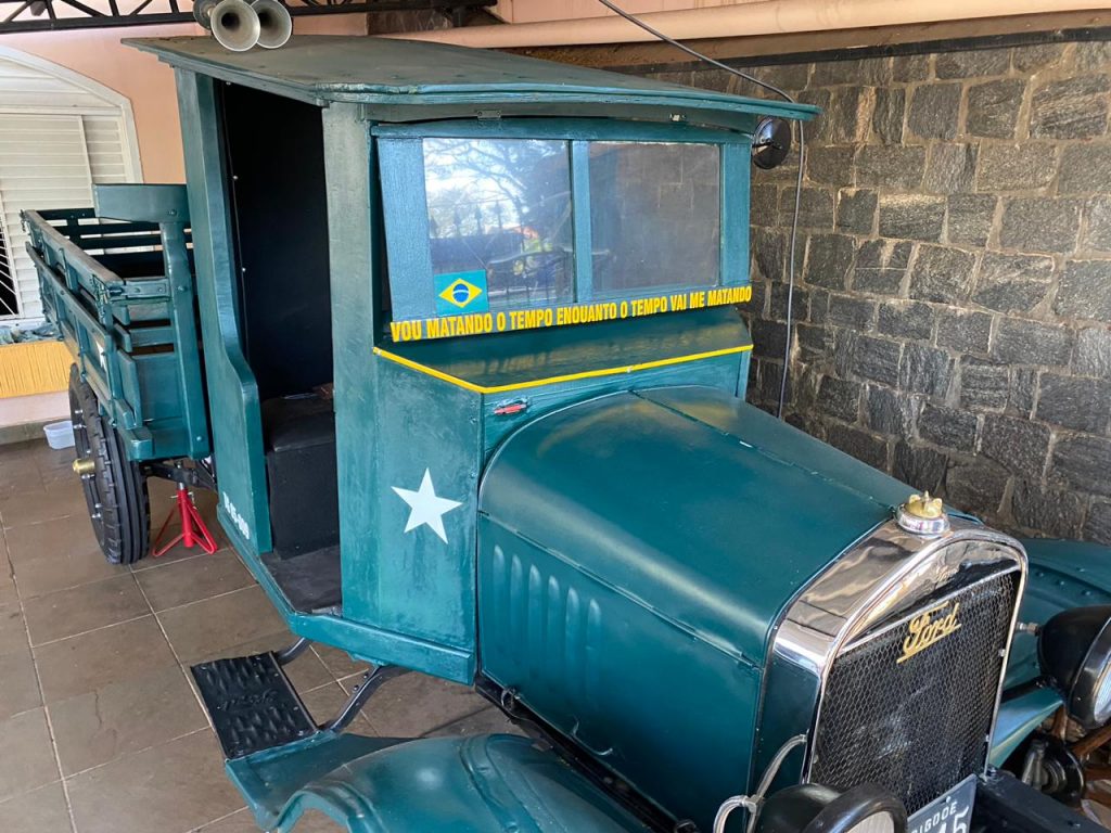 “Aqui em casa o que mais chama atenção das pessoas que passam nas ruas é o caminhão verde de 500 quilos. Ele foi comprado de segunda mão, em São Paulo, por um fazendeiro. Então, esse veículo tinha vindo direto dos Estados Unidos e o objetivo dele aqui no Brasil era para ser usado para puxar 25 quilos de café. Entretanto, o dono da fazenda desistiu da ideia e ofereceu para o meu avô materno que trabalhava com ele comprar. Meu avô não tinha dinheiro para realizar a compra e foi então que o sogro de uma das minhas tias acabou adquirindo, mas um mês depois o Exército confiscou o veículo”, explica o pioneiro José Saldanha.
