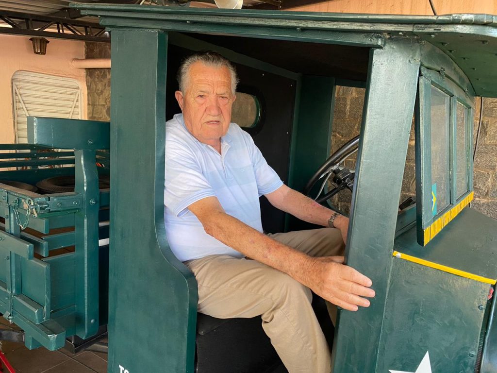 Há quase 40 anos o pioneiro dedica parte da vida para os veículos antigos, uma paixão que sempre existiu, de acordo com ele. Hoje, dos seis veículos que tem na coleção, três ficam expostas no quintal de sua casa. Ao passar em frente à residência é possível ver o caminhão Ford usado pelo exército e dois tratores, um de 1945 e outro de 1951.