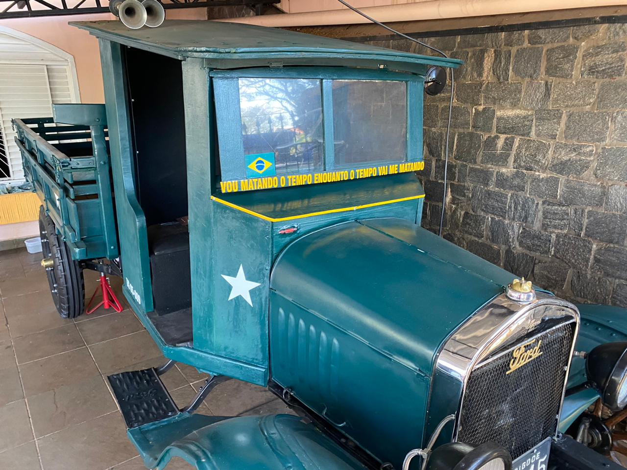 “Aqui em casa o que mais chama atenção das pessoas que passam nas ruas é o caminhão verde de 500 quilos. Ele foi comprado de segunda mão, em São Paulo, por um fazendeiro. Então, esse veículo tinha vindo direto dos Estados Unidos e o objetivo dele aqui no Brasil era para ser usado para puxar 25 quilos de café. Entretanto, o dono da fazenda desistiu da ideia e ofereceu para o meu avô materno que trabalhava com ele comprar. Meu avô não tinha dinheiro para realizar a compra e foi então que o sogro de uma das minhas tias acabou adquirindo, mas um mês depois o Exército confiscou o veículo”, explica o pioneiro José Saldanha.