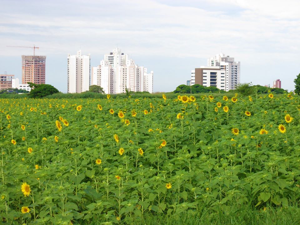 Uma plantação de girassóis virou atração em Maringá. Em meio à cidade, a paisagem colorida chama atenção e vira alvo de belíssimas fotos por quem passa pelo local.