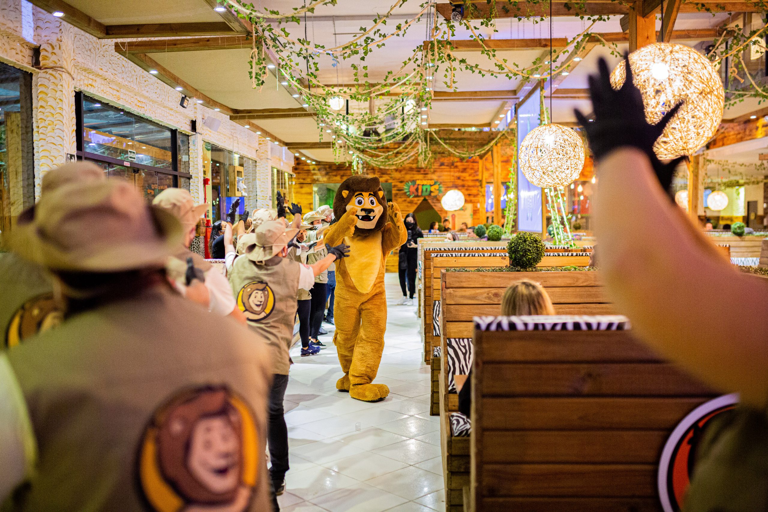 No restaurante inspirado no mundo selvagem, quem faz o show é o Leonel, o mascote. Com muita música e dança, até mesmo os mais tímidos se deixam levar pela alegria do leão.