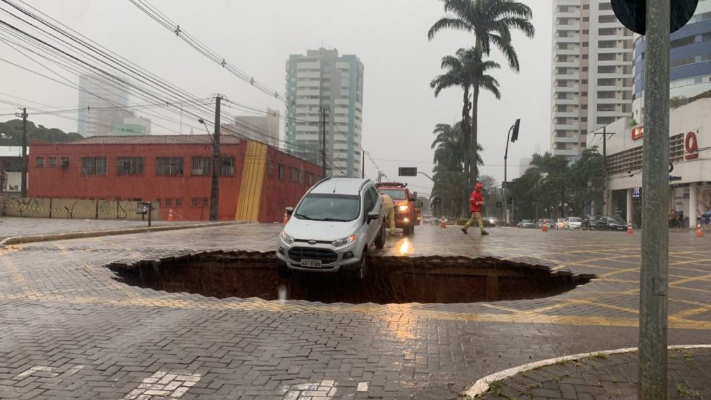 ‘Susto’, diz motorista de carro que quase foi ‘engolido’ por cratera em Maringá