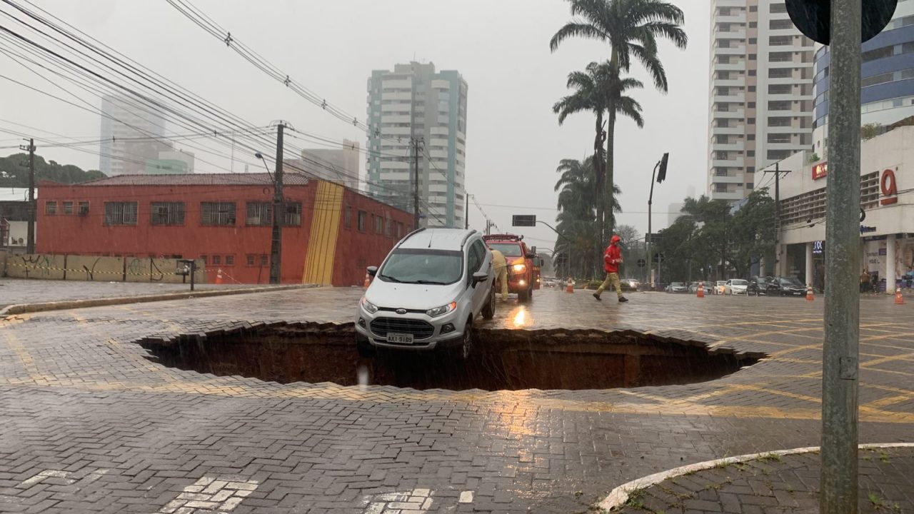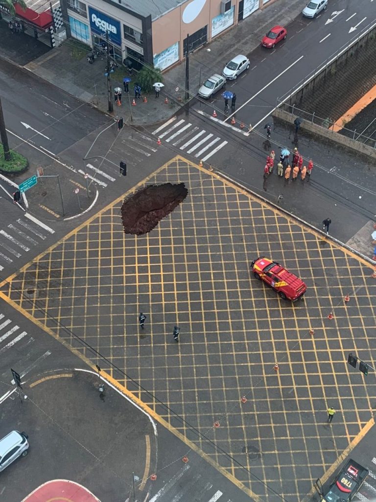 A cratera foi aumentando com o passar do tempo e o buraco deixou o trânsito no local parado. Agentes de trânsito da Secretaria de Mobilidade Urbana (Semob) interditaram as vias da Avenida Paraná e Avenida Horácio Raccanello.