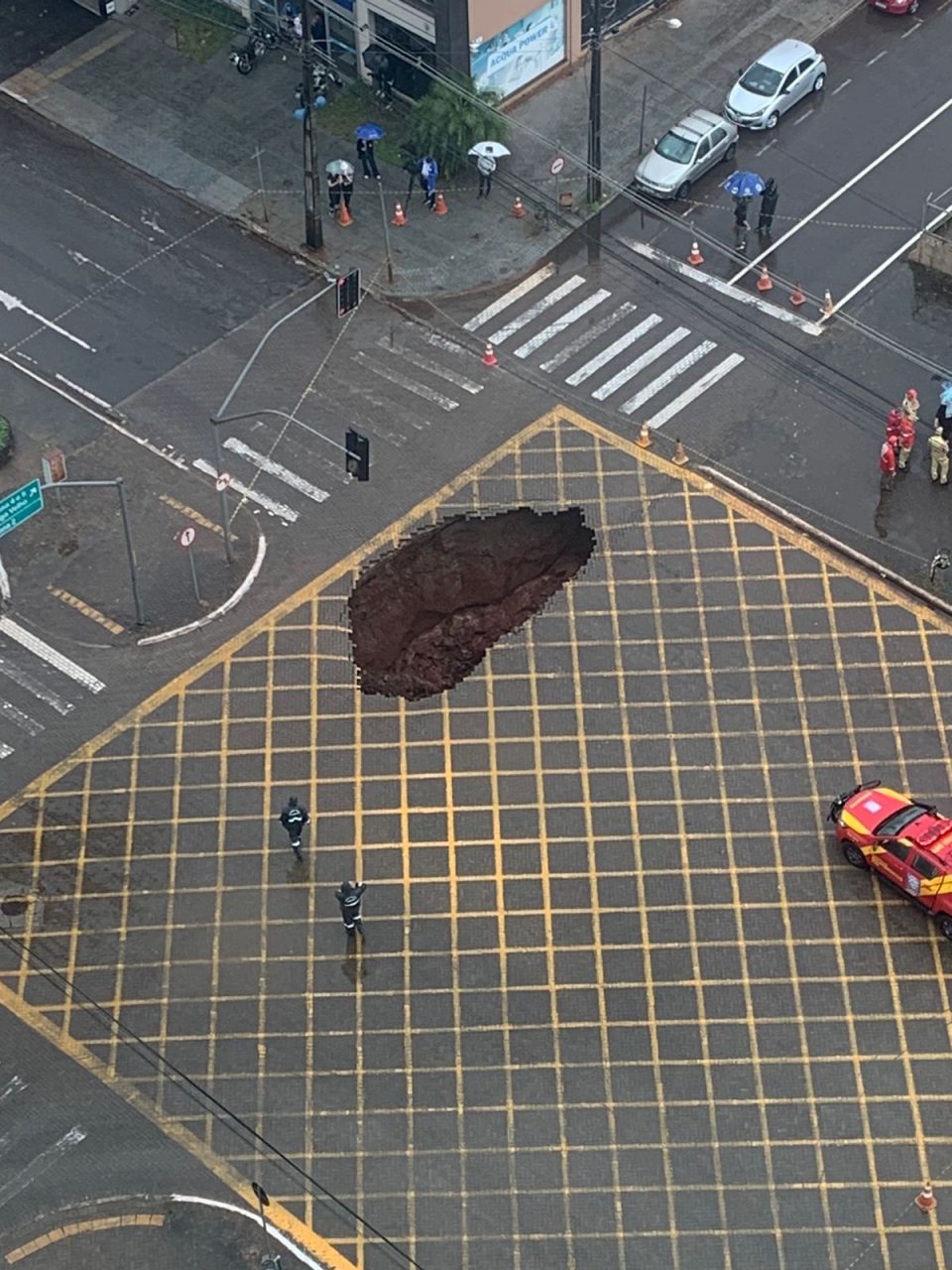 Cratera se abre no centro de Maringá. Foto: Letícia Tristão/CBN Maringá