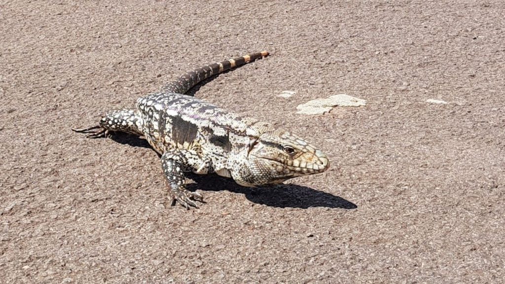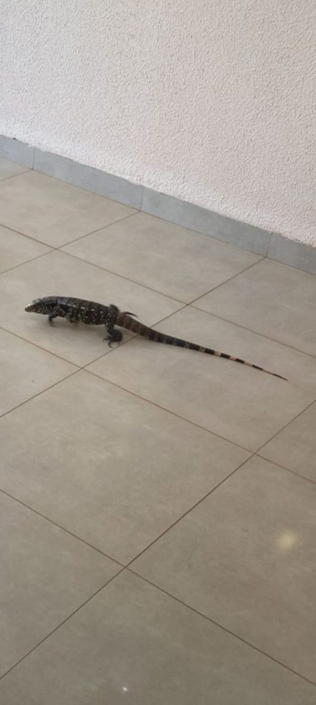 Os moradores relataram que, ao se depararem com o lagarto, inicialmente ficaram surpresos e um pouco apreensivos. O réptil, que pode atingir tamanhos consideráveis e pesar até 5 quilos, estava aparentemente em busca de abrigo ou alimento.