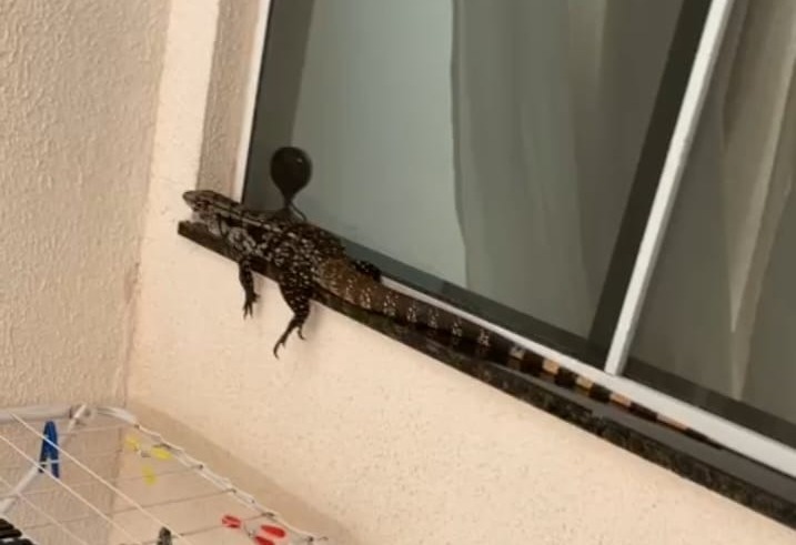 Marcia ainda ressalta que o réptil estava camuflado no mármore da janela e apesar de ter levado um susto com o tamanho do animal, o lagarto parecia tranquilo. “Ele estava bem tranquilo, ficou ali por volta de 40 minutos e depois saiu sozinho pela grade do portão”, afirma.