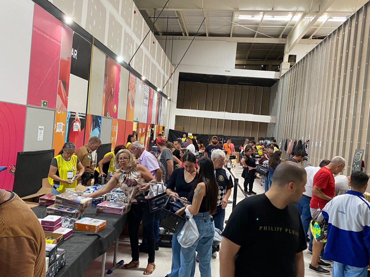 Centenas de pessoas passaram pelo Shopping Cidade Maringá na tarde desta segunda-feira, 17, em busca de produtos importados como eletrônicos, roupas, perfumes, cosméticos e brinquedos vendidos a preços mais baixos. Os itens foram apreendidos pela Receita Federal e estão disponíveis no bazar realizado pelo Conselho Comunitário de Segurança de Maringá (Conseg).
