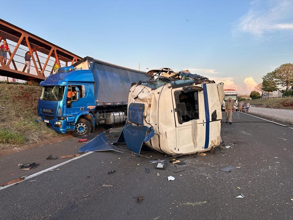 Vídeos flagram acidente que deixou carreta completamente destruída no Contorno Norte em Maringá