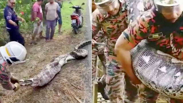 Cobra de 6 metros é capturada após engolir uma cabra inteira