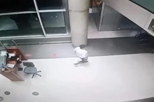 Nas imagens, a porta do edifício é aberta. Na sequência, o funcionário se levanta com uma prancheta e “colhe” os dados de… ninguém. Ele libera a passagem e, logo depois, pega uma cadeira de rodas e oferece ao suposto fantasma.