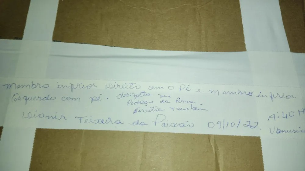 Após sofrer um acidente de motocicleta no último domingo, 9, um homem, de 46 anos, precisou amputar as pernas. Depois do procedimento, os membros foram entregues à família dentro de uma caixa de papelão. O episodio aconteceu em Tocantins e vem repercutindo na internet. Em cima da caixa havia uma mensagem que descrevia os membros amputados.