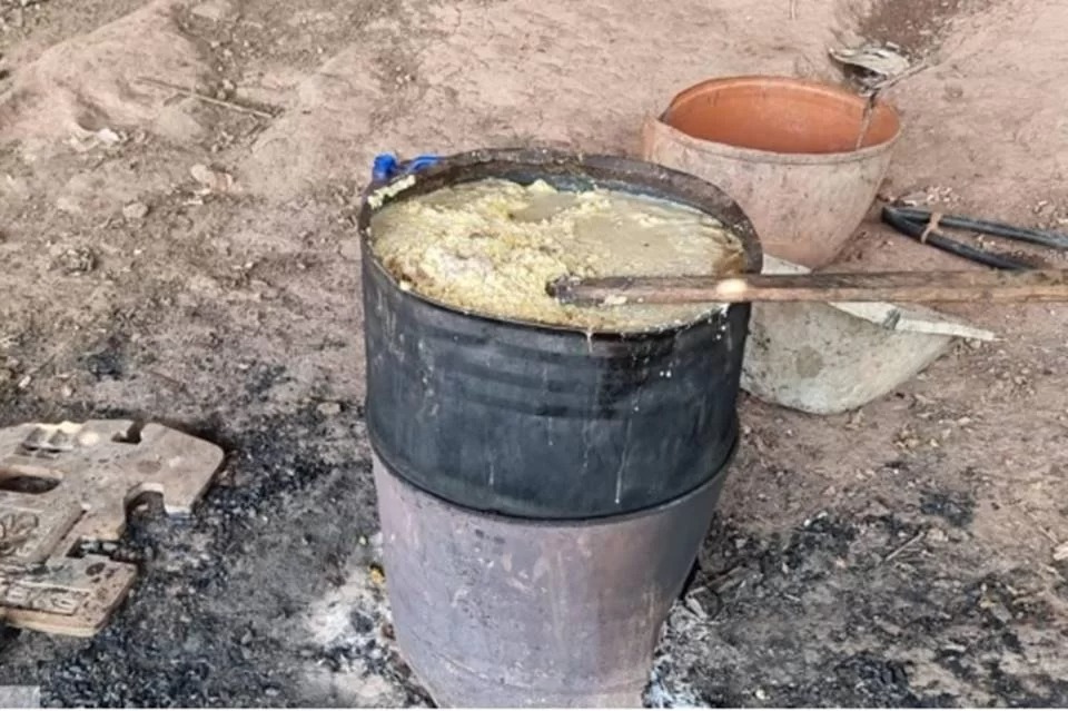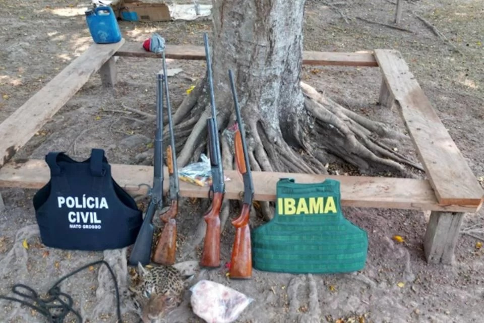 Além disso, no local em que a polícia realizou a prisão, os agentes encontraram um tacho onde estava sendo cozida carne de onça-pintada, além de ossos do animal abatido.