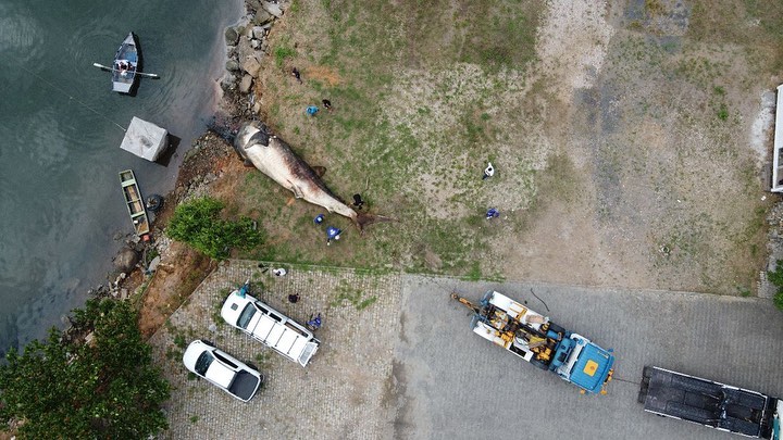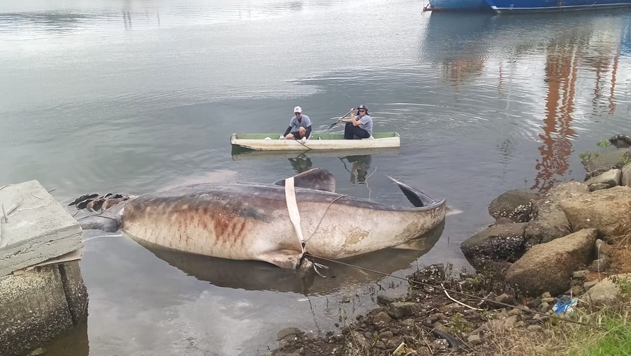O peixe encontrado morto era uma fêmea adulta com cerca de 11,6 metros de comprimento e pesava aproximadamente 12 toneladas, segundo informações do Instituto ORCA.