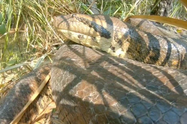 Moradores flagram sucuri gigante entrando em rio no MS