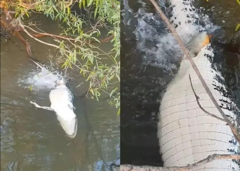 Pescadores flagram jacaré sendo devorado por piranhas; veja flagrante