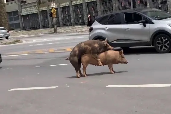 Porcos são flagrados em ‘momento íntimo’ no meio de avenida movimentada; vídeo viralizou