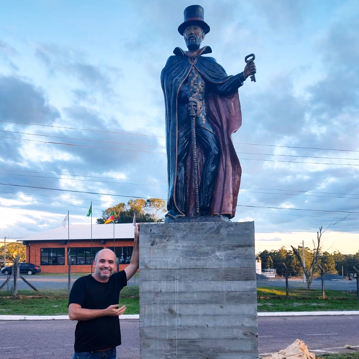Natural de Gravataí e mestre de quimbanda independente, Lukas de Bará informou que a estátua, feita de cimento por um ateliê, ainda não foi erguida devido à chuva.