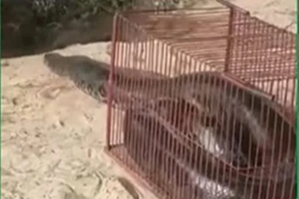 As dimensões do réptil impressionaram as pessoas que passavam pelo local.