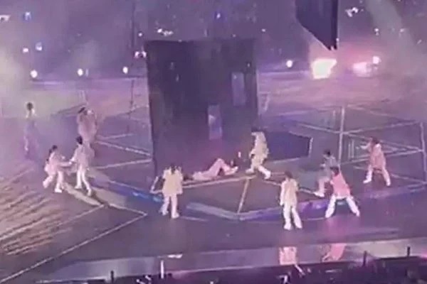 Vídeos que estão circulando nas redes sociais mostram o momento exato do acidente. Os outros integrantes interromperam suas performances imediatamente e correram pra ajudar.