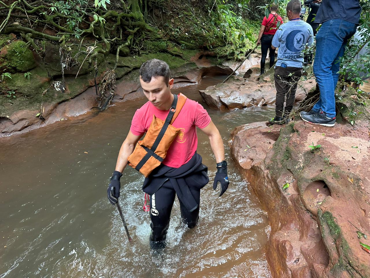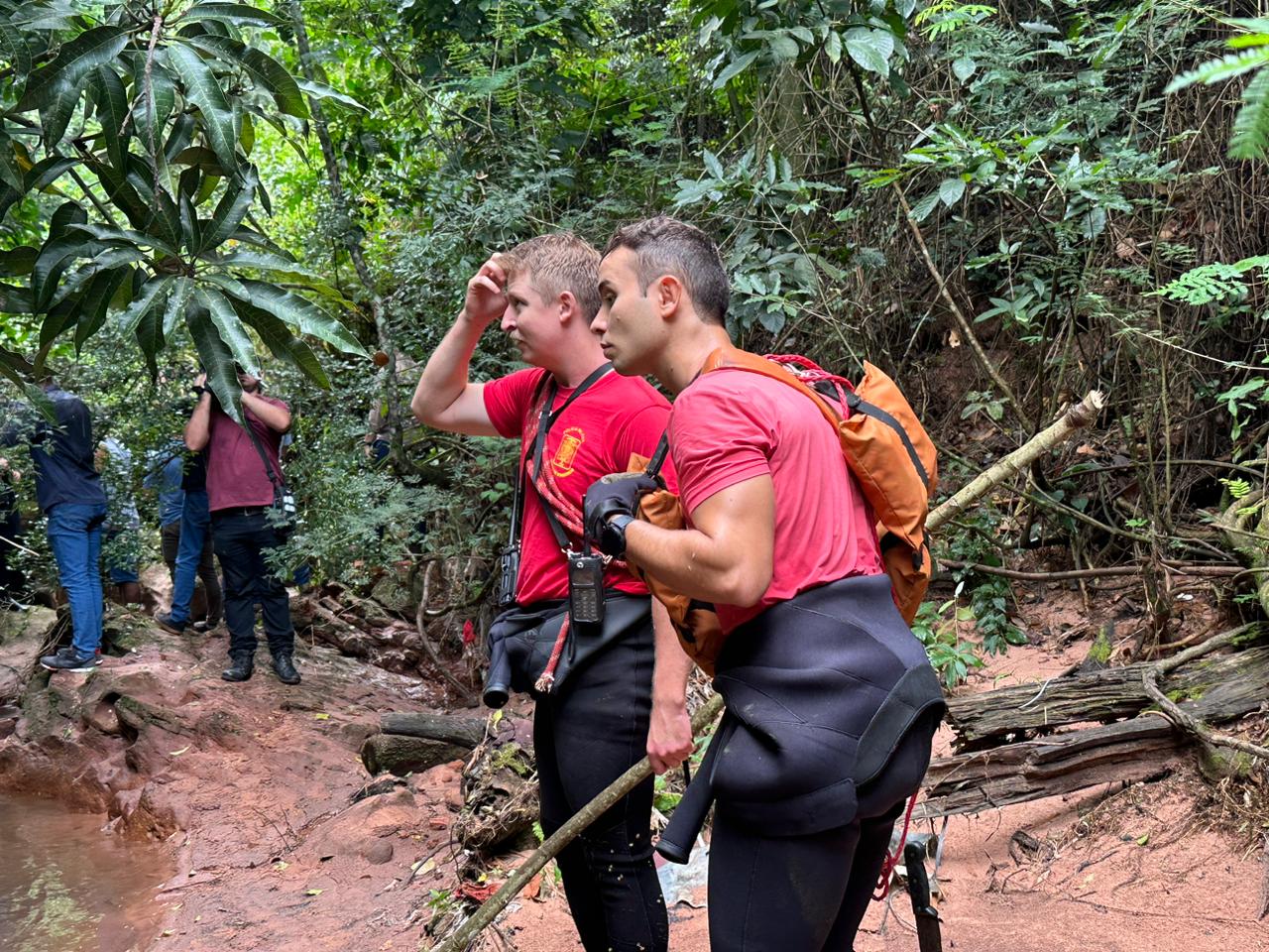 “Fomos acionados ontem devido a uma ocorrência de cabeça d’água na área, com relatos de oito a nove pessoas no local. Ao chegarmos, encontramos cinco pessoas já em segurança fora da água, mas ainda havia quatro desaparecidas. Dividimos nossas equipes em duas: uma iniciou a busca a partir do ponto inicial até os dois rios, enquanto a outra equipe começou a busca a partir dos dois rios abaixo. Foi nesse ponto que encontramos uma das vítimas, Kauane, a aproximadamente 1800 metros rio abaixo. O rapaz, Paulo Henrique, foi localizado cerca de 300 metros do ponto inicial, enquanto a outra moça foi encontrada cerca de 500 metros rio abaixo, próximo ao primeiro rio”, explica o sargento do Corpo de Bombeiros, Edi Carlos.