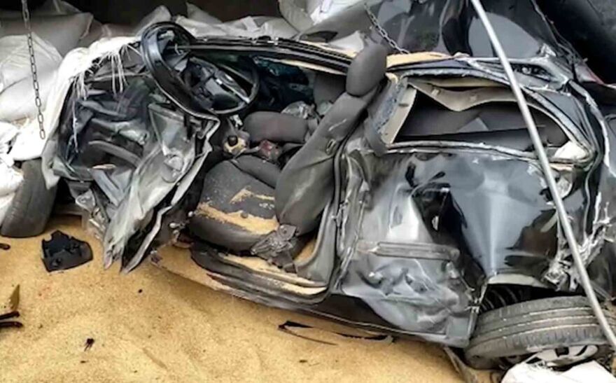 Ao tentar desviar o caminhão bateu na mureta, atingiu a traseira de um caminhão Baú e tombou em cima do Celta. Um terceiro caminhão caçamba, também foi atingido.