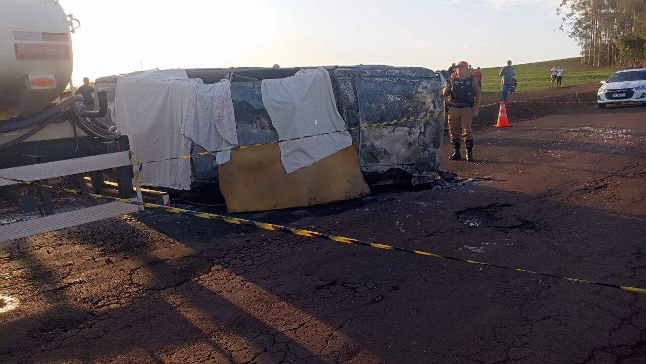 O motorista de um carro, ainda não identificado, morreu carbonizado na tarde desta quinta-feira, 20, na PR-457 em Itambé.