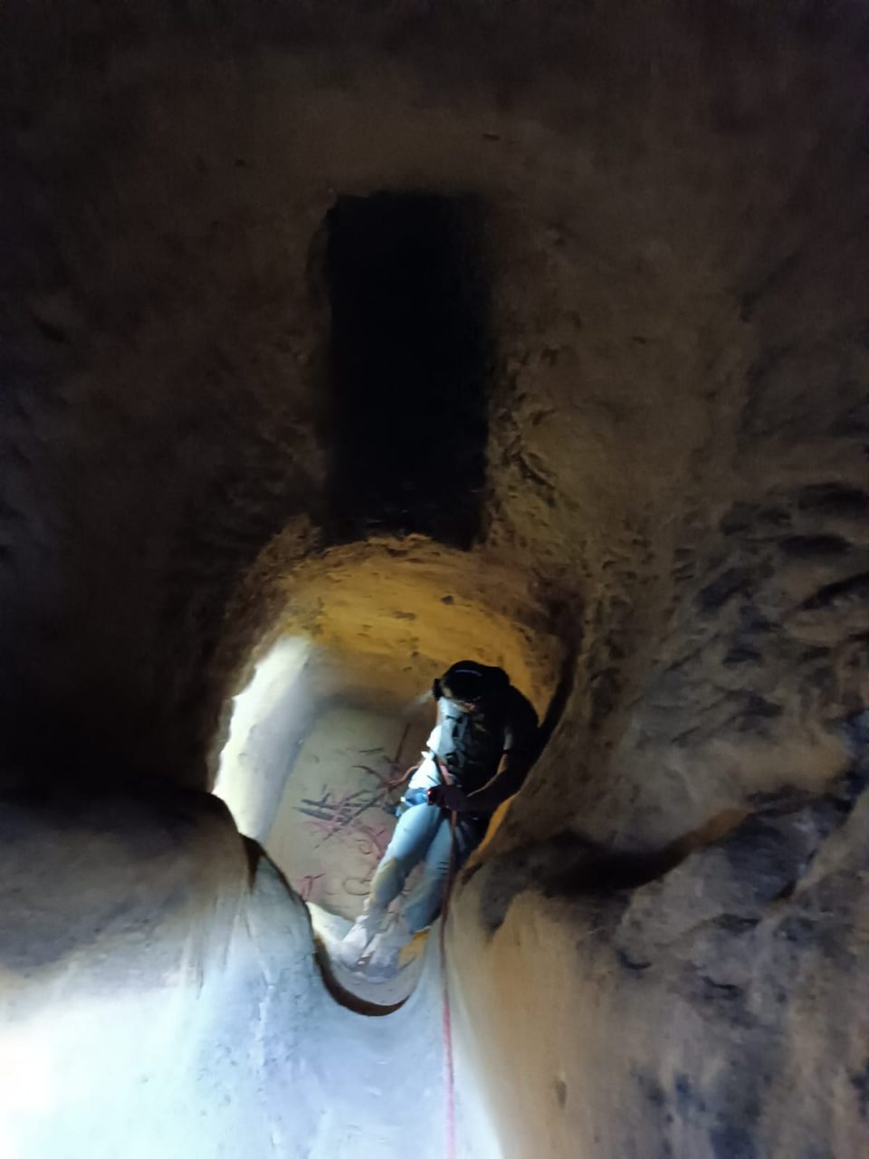 Então, em uma escavação de rapel, o biólogo descobriu mais 120 m² na caverna. “Desconfiei que havia mais do que parecia alie junto com o Udson decidi explorar o local mais a fundo, usando rapel. Encontramos novas galerias na caverna, um espaço pelo menos 3 vezes maior do que o já conhecido, de cerca de 120 m². Quando desci o poço seco achei túneis e depois esse espaço maior até então desconhecido. Também encontramos pacotes de velas, pedaços de madeira e cordas no local que teria sido usado como esconderijo por militares perseguidos pelo golpe de 64”, diz Fernando.